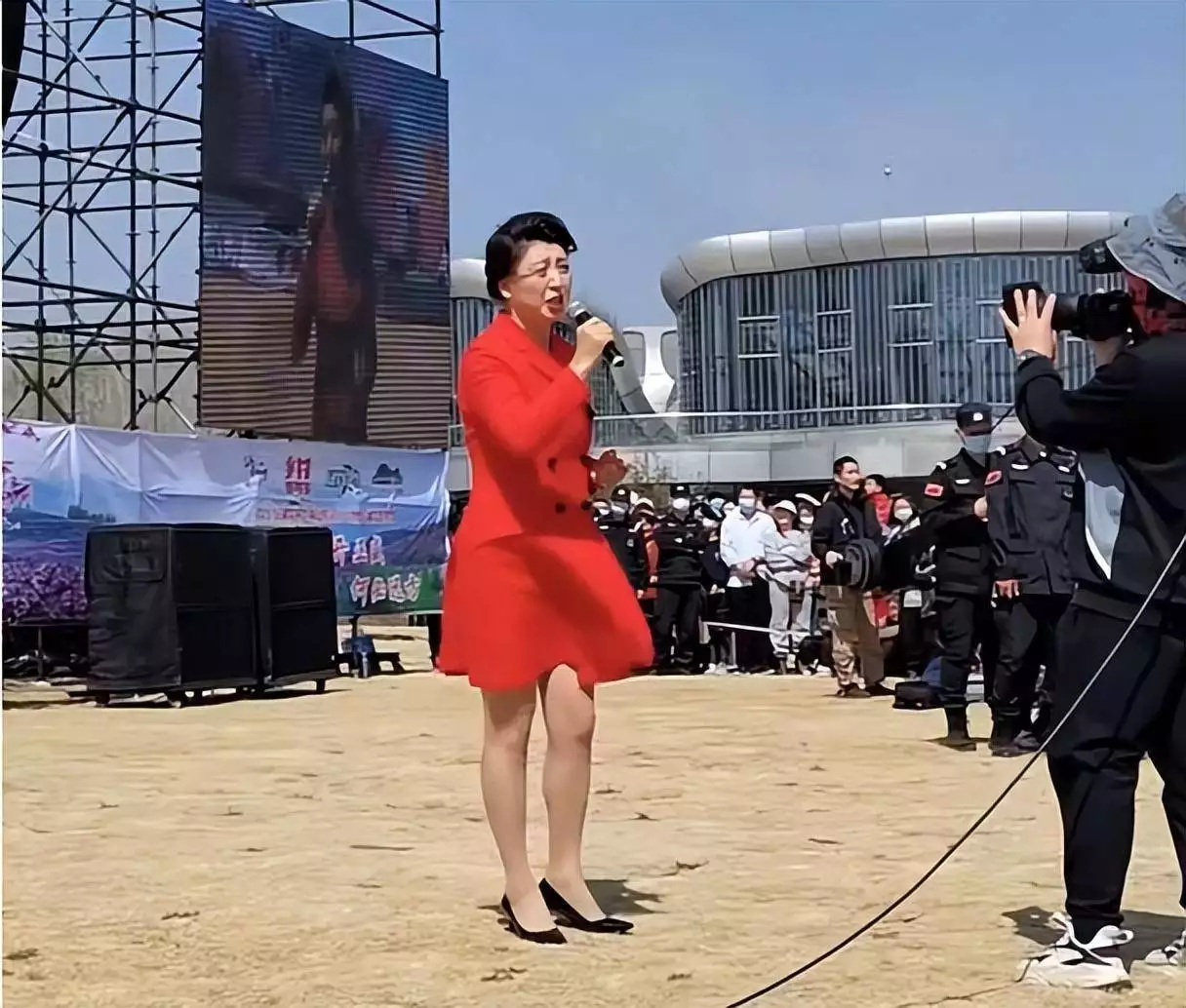 随着舆论发酵,公众开始深挖这位“老艺术家”的过往。人们发现,闫学晶多年来刻意营造的“海政文工团大校”身份,竟是一场精心设计的骗局。2007年她确实通过特招进入海政文工团,但身份是专业技术类文职干部,既非现役军人,更无军衔可言。文职干部肩章的六角花标识,被她巧妙地与军官的五角星肩章混淆,多年来在公开场合暗示自己“正师级待遇”。直到2018年军队文艺改革,海政文工团建制撤销,她选择自主择业转业地方,社保、养老金全部转入地方系统。可她从未澄清身份变更,反而继续利用“部队背景”的模糊印象捞金,直播带货时屡屡强调“军人出身”,商业演出海报上“海政文工团国家一级演员”的头衔醒目依旧。